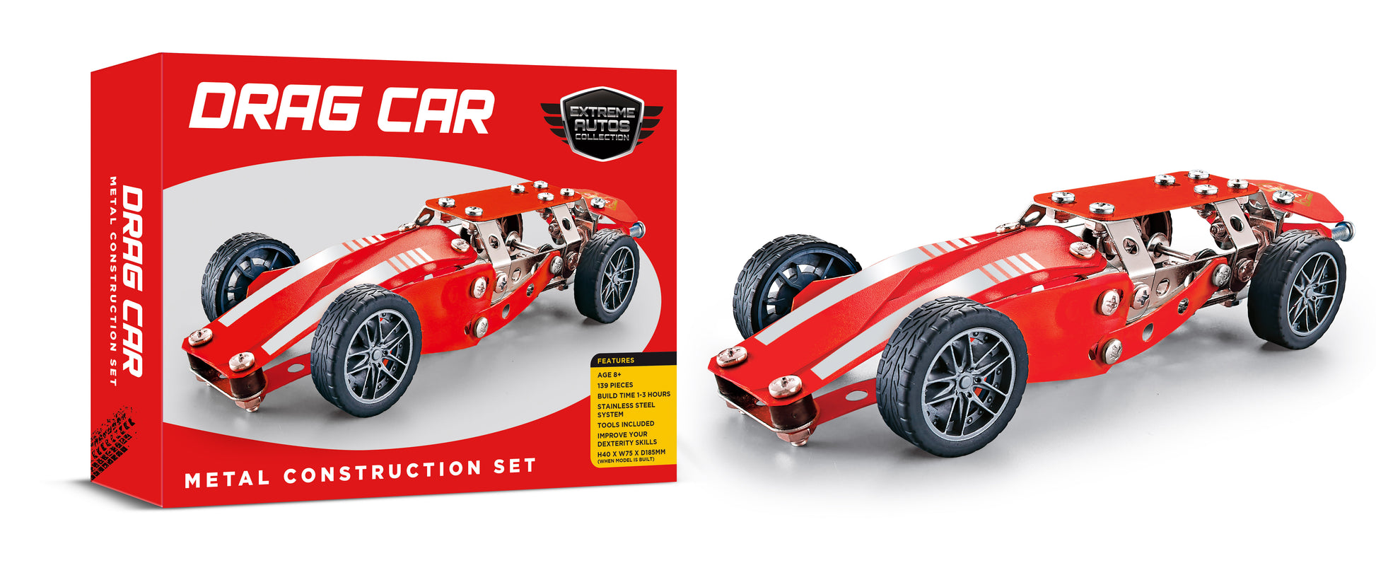 Get ready to build your very own drag car racer with this exciting metal construction set – the ultimate project for anyone who loves to create, tinker, and take on a challenge.
