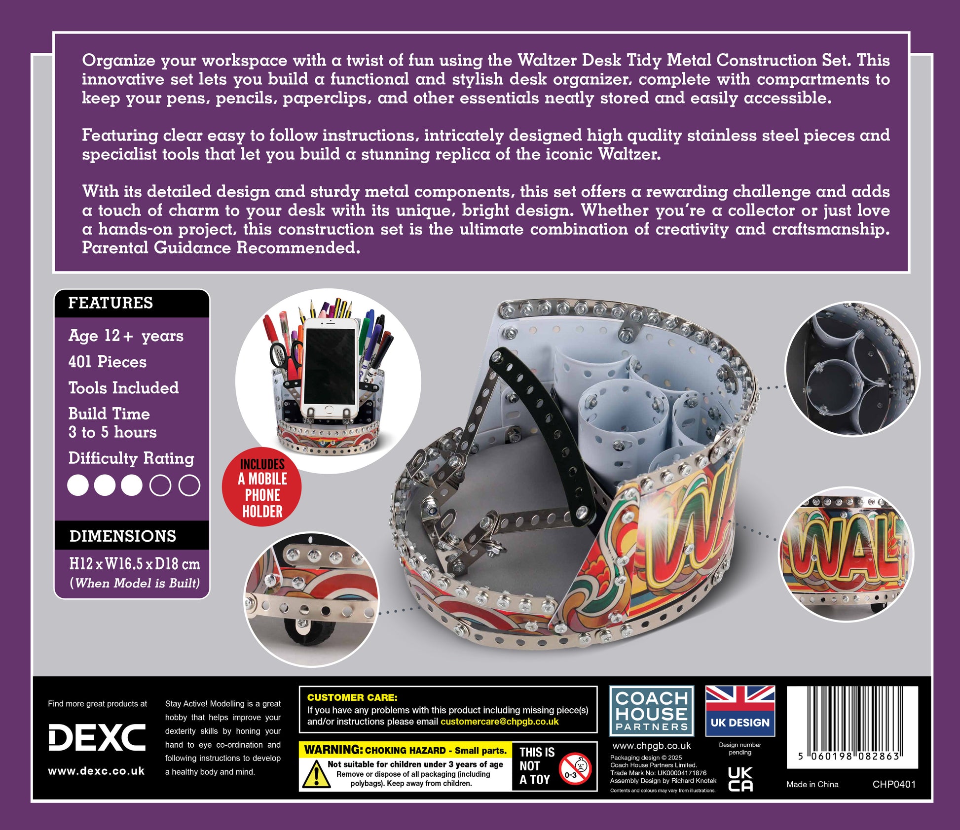 Organize your workspace with a twist of fun using the Waltzer Desk Tidy Metal Construction Set.